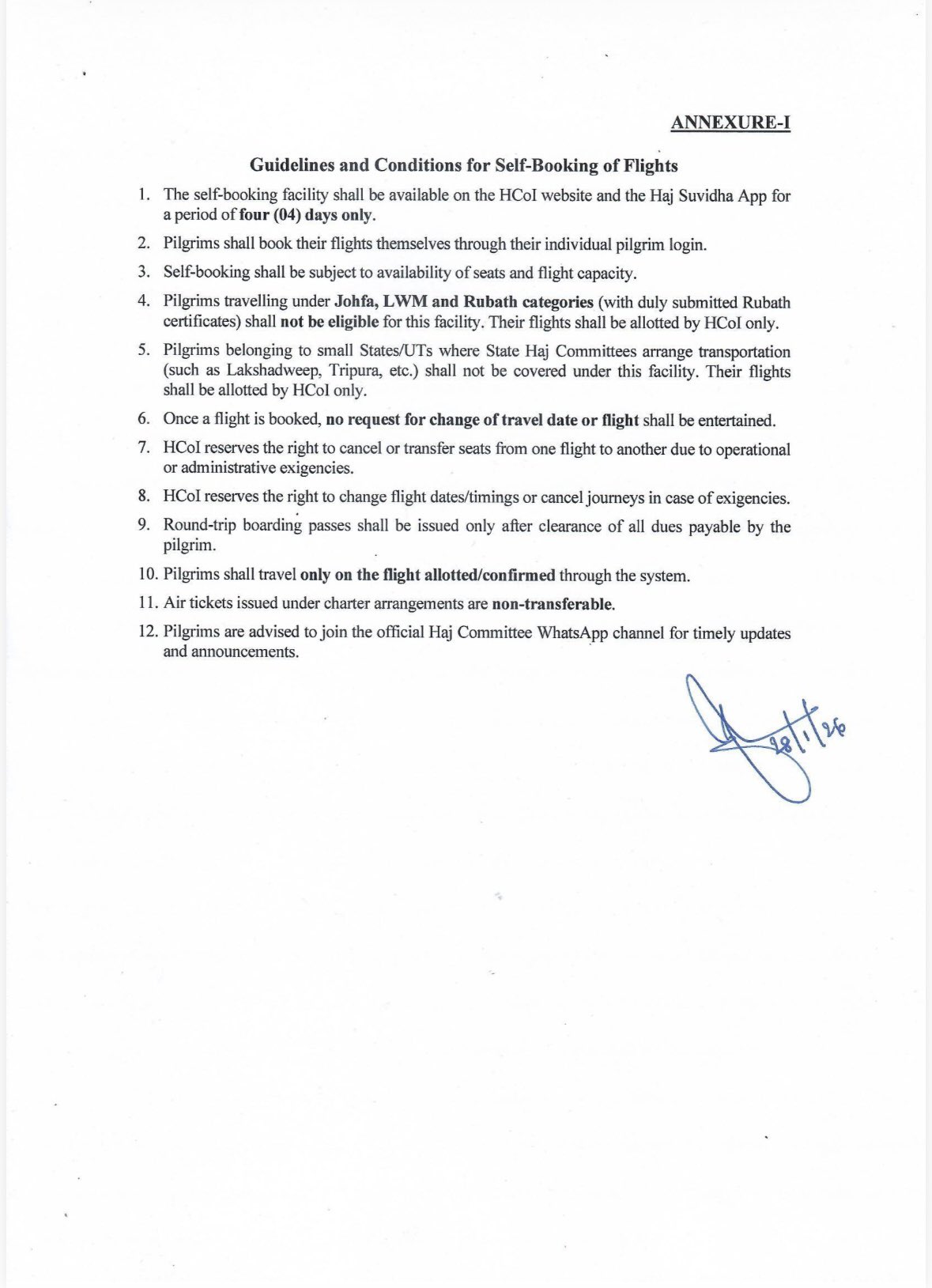 Pilgrims opting for self-booking are required to carefully read and strictly follow the Guidelines and Conditions mentioned in Annexure-I of the circular.